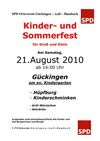 Der SPD Ortsverein Gückingen-Aull-Hambach lädt ein zum Kinder- und Sommerfest am 21.08.2010 ab 14:00 Uhr am ev. Kindergarten.